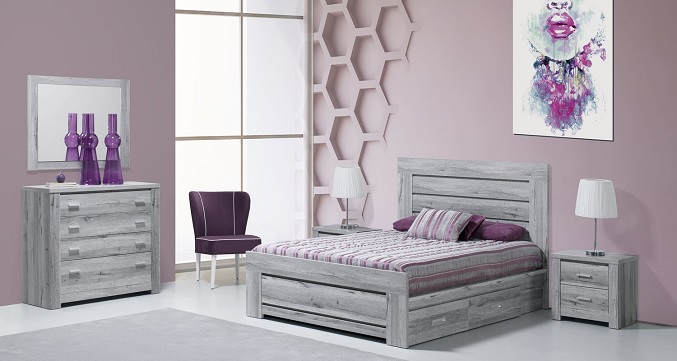 QUARTO CASAL CARVALHO CINZA COM FRISO LACADO MOKA CR01