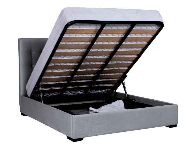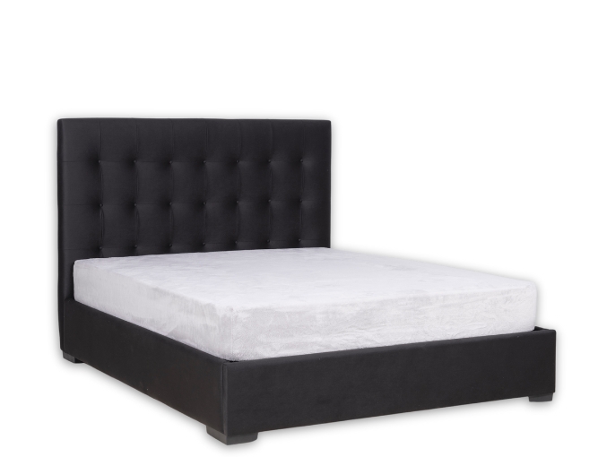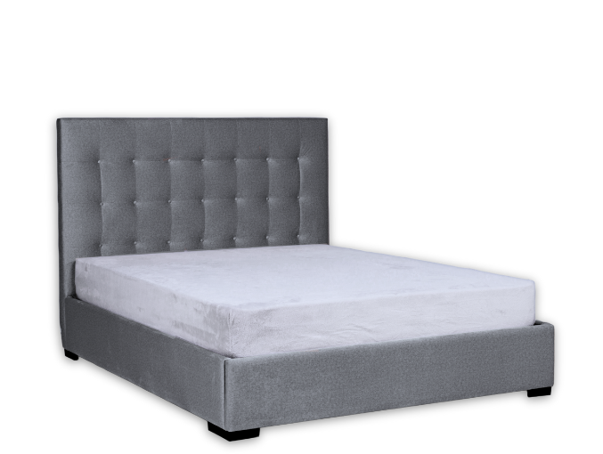 CAMA CASAL ESTOFADA TECIDO CARLO ANTRACITE COM ESTRADO ELEVATÓRIO ARMANI COM 7 BOTÕES