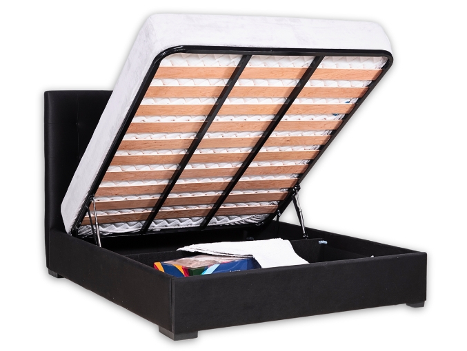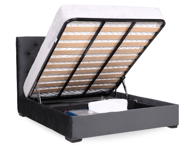 CAMA CASAL ESTOFADA TECIDO CARLO ANTRACITE COM ESTRADO ELEVATÓRIO LOSANGULOS