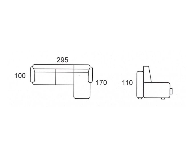 - Dimensões: A.1100mm, L.2950mm/1000mm, F.1700mm/1000mm