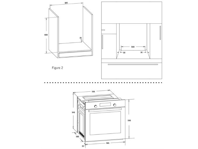 - Dimensões interiores: A.545mm, L.555mm, F.565mm