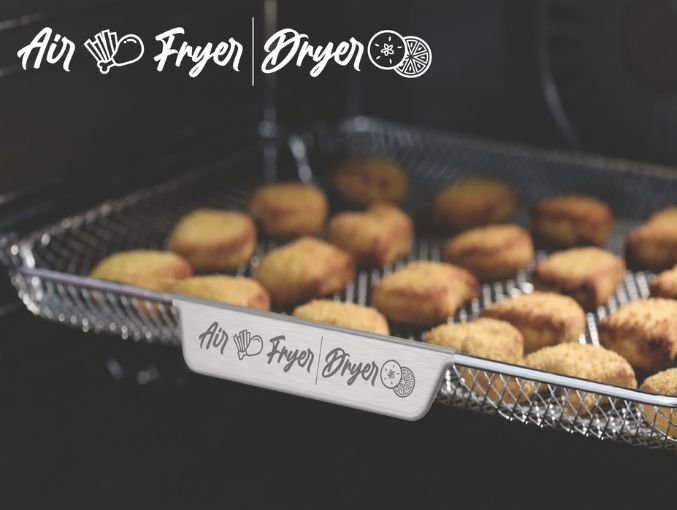 - Função Air Fry (confeção típica de máquinas de fritos, permitindo confecionar carne, filetes de peixe, peixe inteiro, legumes e vegetais e bolos)