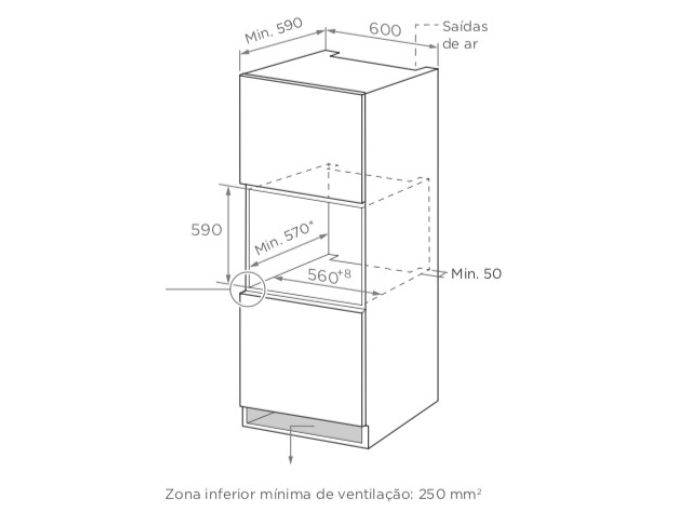 - Dimensões exteriores: A.586mm,L.595mm,F.570mm