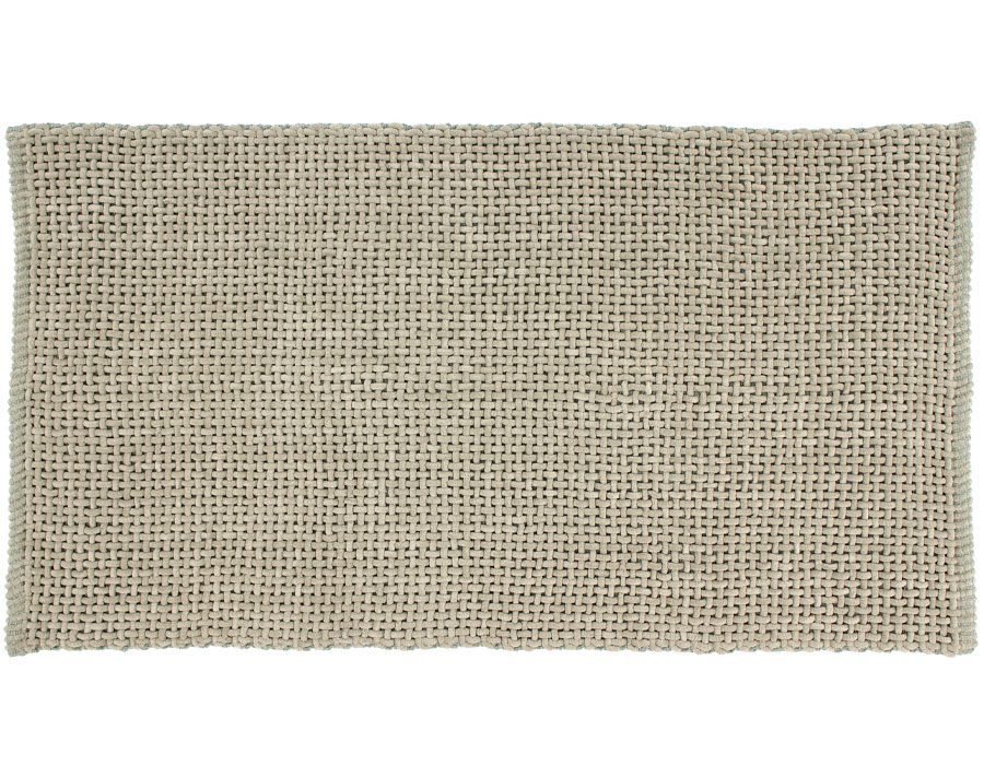 - Cordão em tecido Chenille (tecido macio e encorpado, permitindo assim um maior conforto e uma maior durabilidade do tapete) (70% Poliéster+ 30% Algodão)