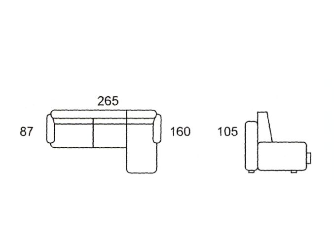 - Dimensões: A.1050mm, L.2650mm/750mm, F.1600mm/870mm